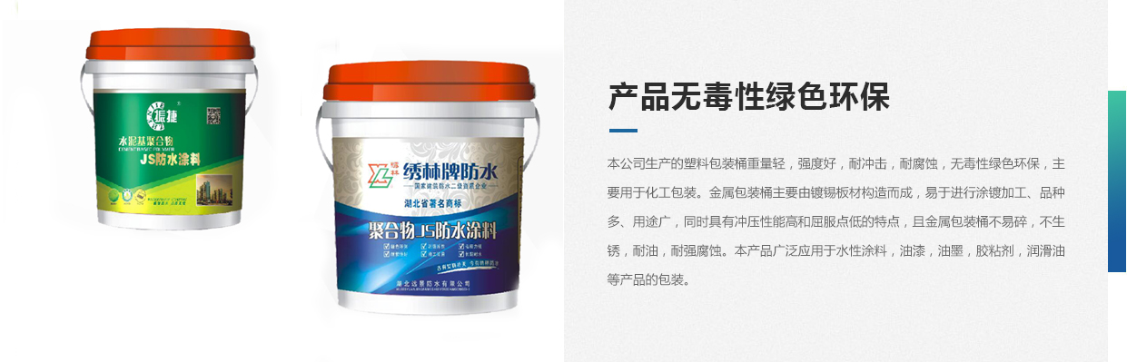 本公司生產(chǎn)的塑料包裝桶重量輕,強(qiáng)度好,耐沖擊,耐腐蝕,無毒性綠色環(huán)保,主要用于化工包裝。金屬包裝桶主要由鍍錫板材構(gòu)造而成,易于進(jìn)行涂鍍加工、品種多、用途廣,同時(shí)具有沖壓性能高和屈服點(diǎn)低的特點(diǎn),且金屬包裝桶不易碎,不生銹,耐油,耐強(qiáng)腐蝕。本產(chǎn)品廣泛應(yīng)用于水性涂料,油漆,油墨,膠粘劑,潤滑油等產(chǎn)品的包裝。